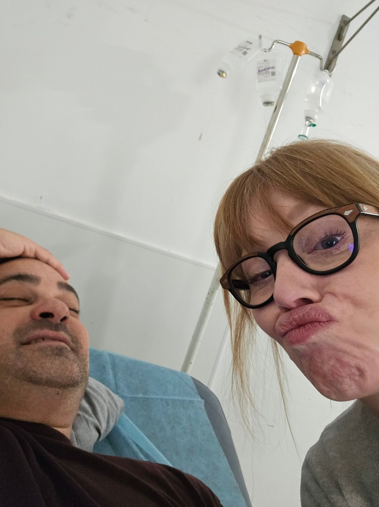 On our first night in, we got a flat tire, and Jeremy got food poisoning in a lovely cafe in Old Town Caceres. 36 hours in, ER!